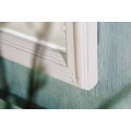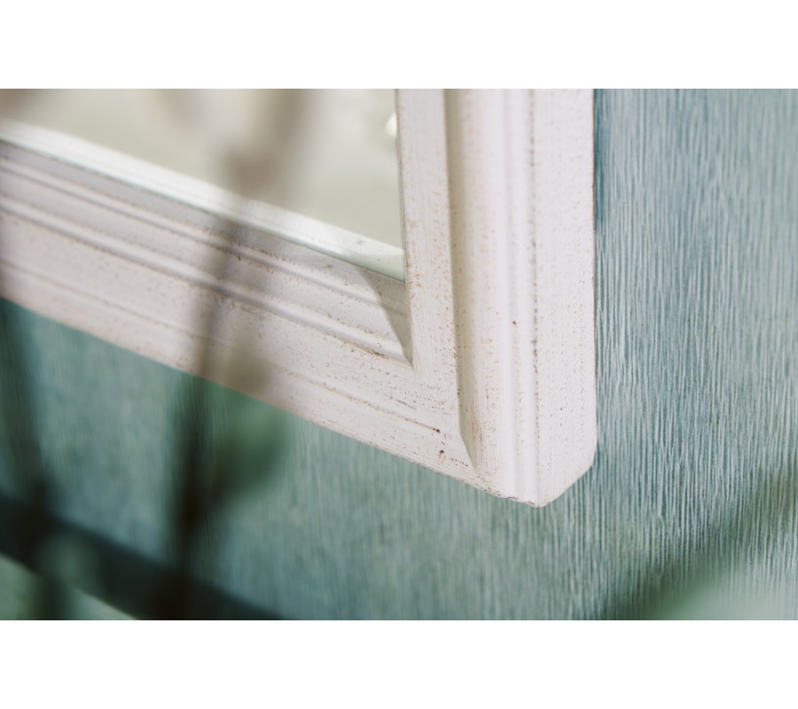 Nástenné zrkadlo Castillo zo seba vyžaruje šarm starožitného nábytku. Biely náter na drevenom ráme je zámerne zošúchaný, čo mu dodáva jedinečný vintage charakter. Jeho tvar a tabuľové delenie zrkadlovej plochy pripomína poloblúkové okno. Štíhle línie v kombinácii s krivkou na vrchu pôsobia jemným elegantným dojmom. Univerzálna svetlá farba vám umožňuje široké možnosti kombinovania s ďalším nábytkom. Zrkadlo môžete umiestniť do jedálne alebo obývačky nad vintage príborník alebo komodu s podobným svetlým náterom. Môžete tiež pridať výrazné farebné, či lesklé metalické dekorácie alebo lampu. Pri správnom umiestnení k svetelnému zdroju vám zrkadlo pomôže priestor rozžiariť a bude pôsobiť ako ďalšie okno v miestnosti. Okrem praktickej funkcie môže tiež pôsobiť ako dekoračný doplnok v predsieni nad konzolovým stolíkom. Hodí sa tiež do priestorov zariadených nábytkom v provensálskom štýle, s ktorým sa prepojí vďaka svojej svetlej farbe a elegantnej siluete rámu.