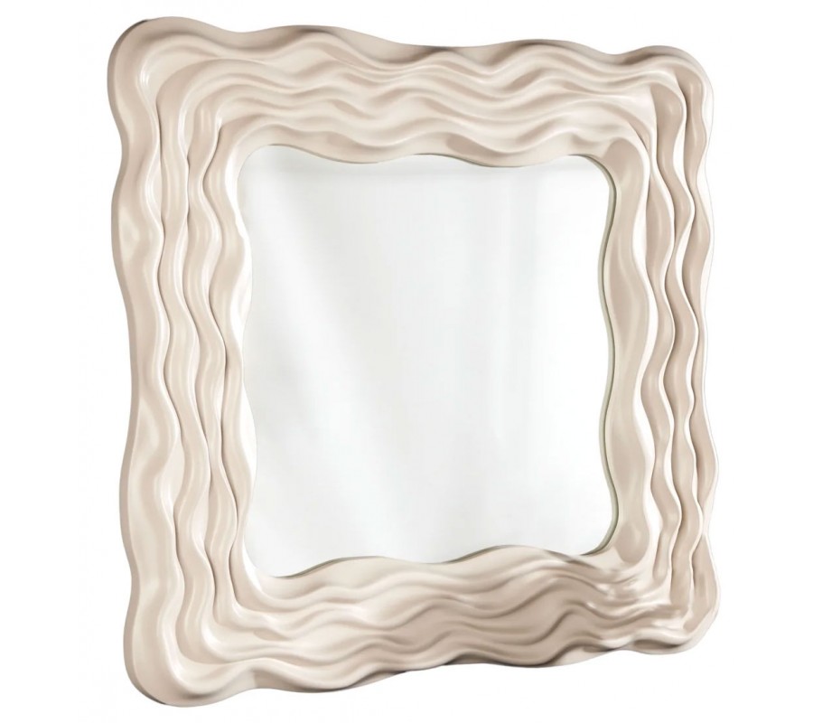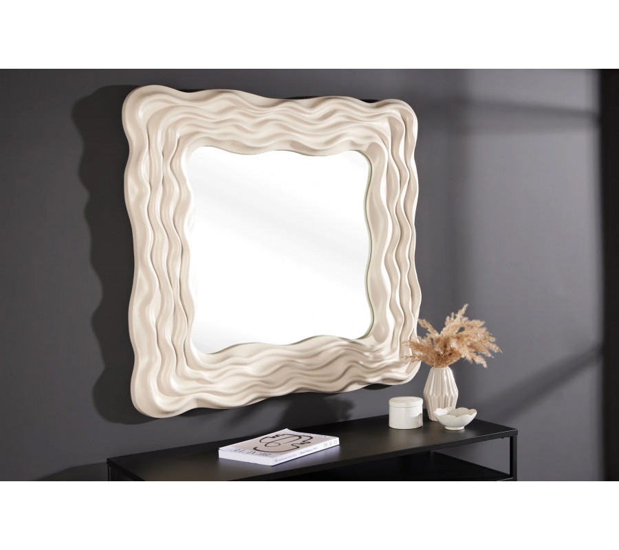 Dizajnové štvorcové nástenné zrkadlo Fouetté so zdobeným rámom s reliéfnym vlnovkovým vzorom svetlá béžová 90 cm