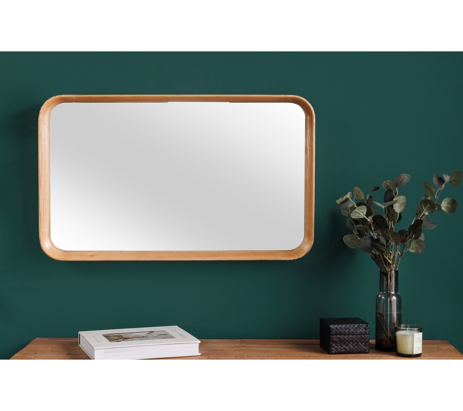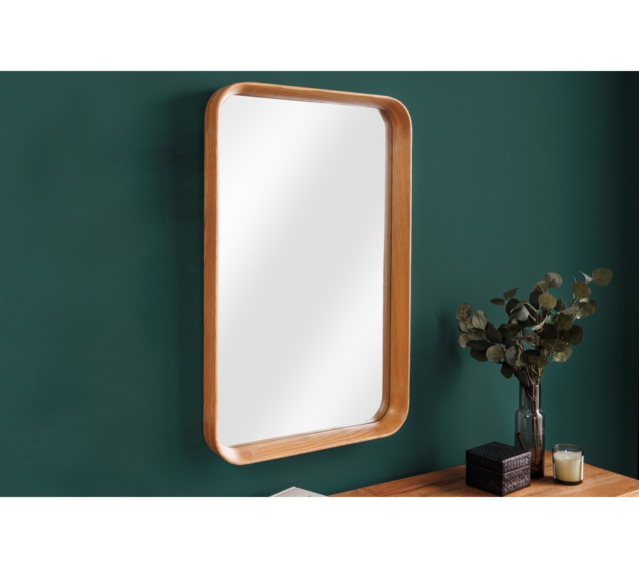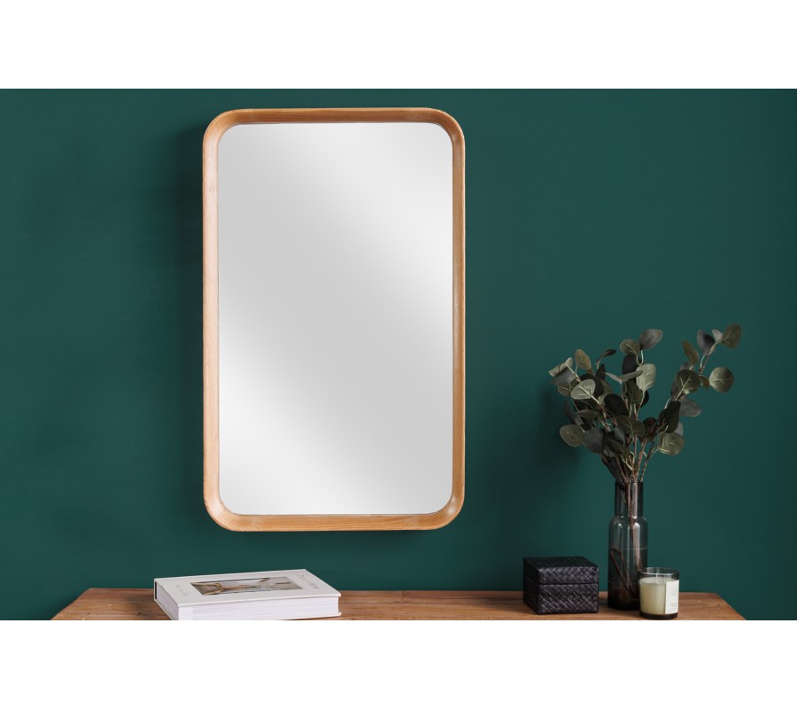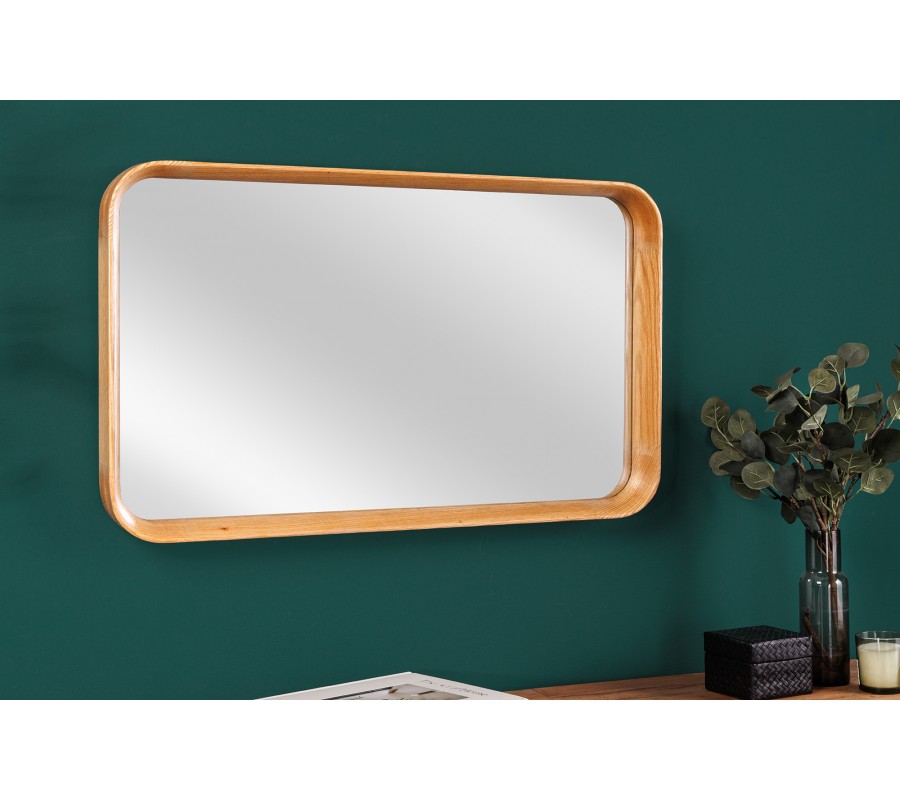 Moderné obdĺžnikové nástenné zrkadlo Courbé s rámom v prírodnej svetlej hnedej farbe z ohýbaného dubového dreva 80 cm