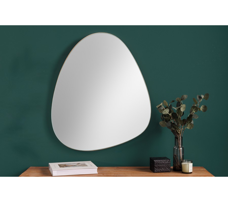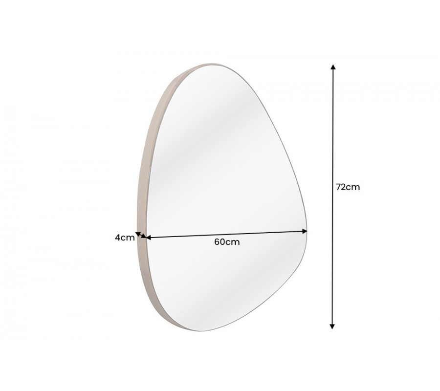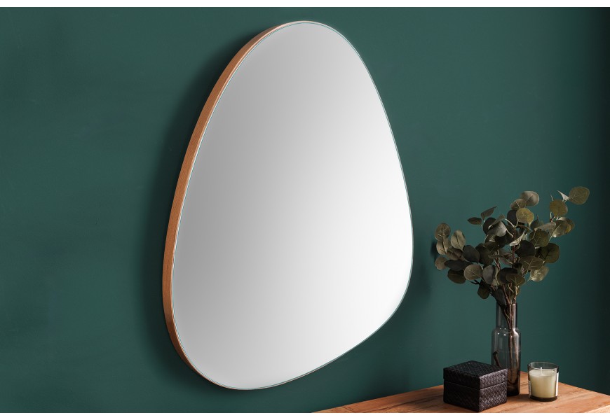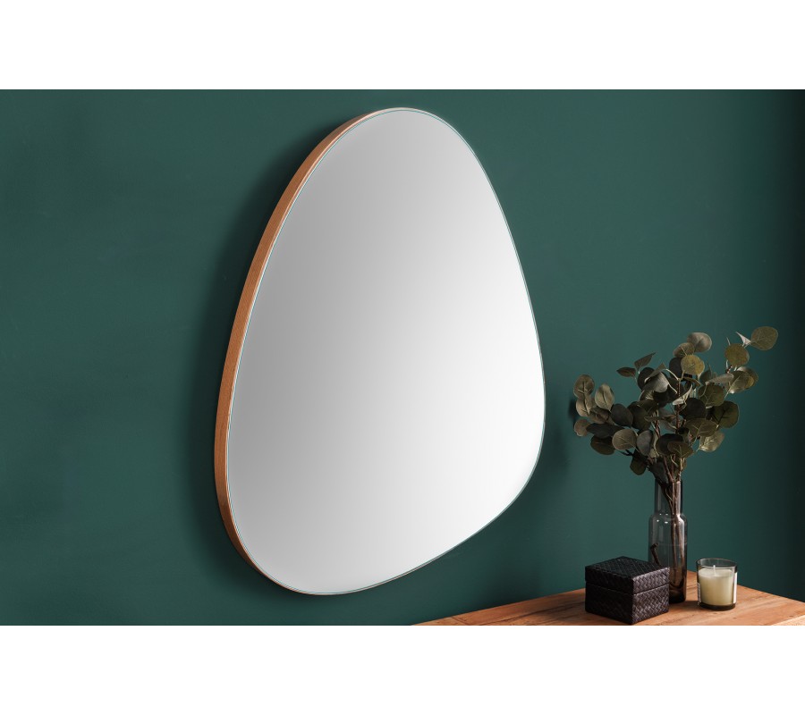 Moderné asymetrické nástenné zrkadlo Antonio so zaoblenými hranami a hnedým dubovým rámom po bokoch 72 cm