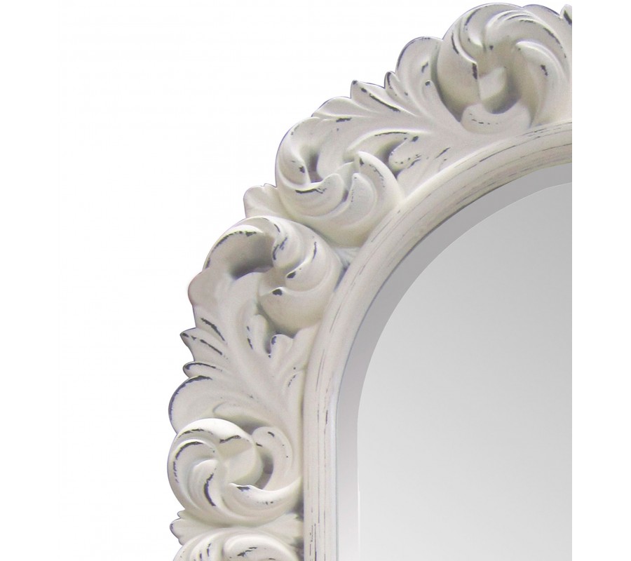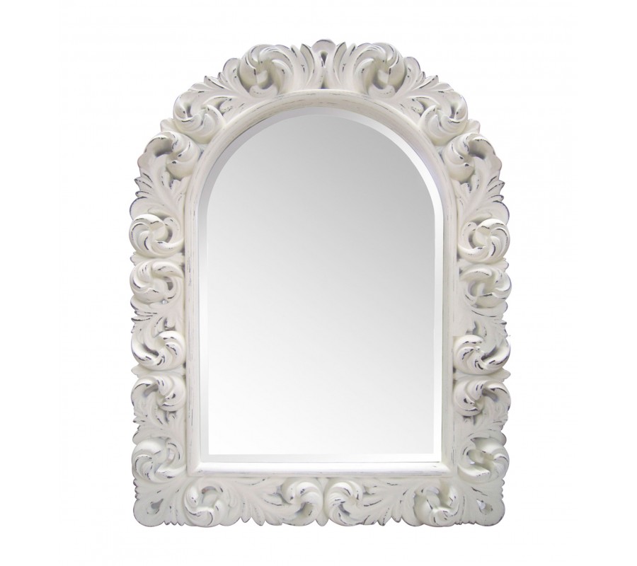 Provensálske vintage biele nástenné zrkadlo Marzia s vyrezávaným oblúkovým rámom 120 cm
