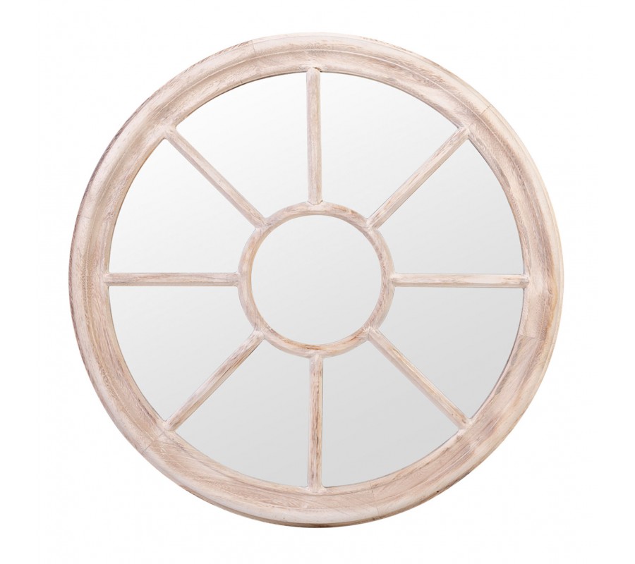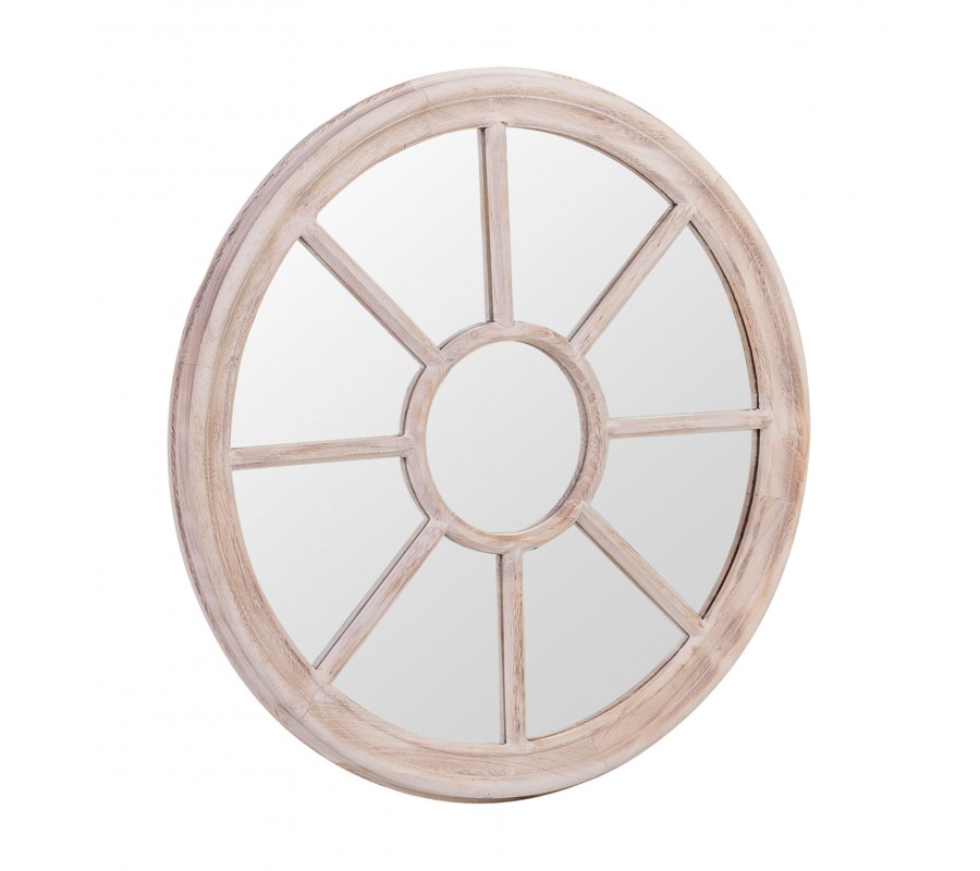 Vidiecke okrúhle vintage nástenné zrkadlo Rueda s dizajnom kolesa s rámom z bieleného dreva svetlá hnedá 75 cm