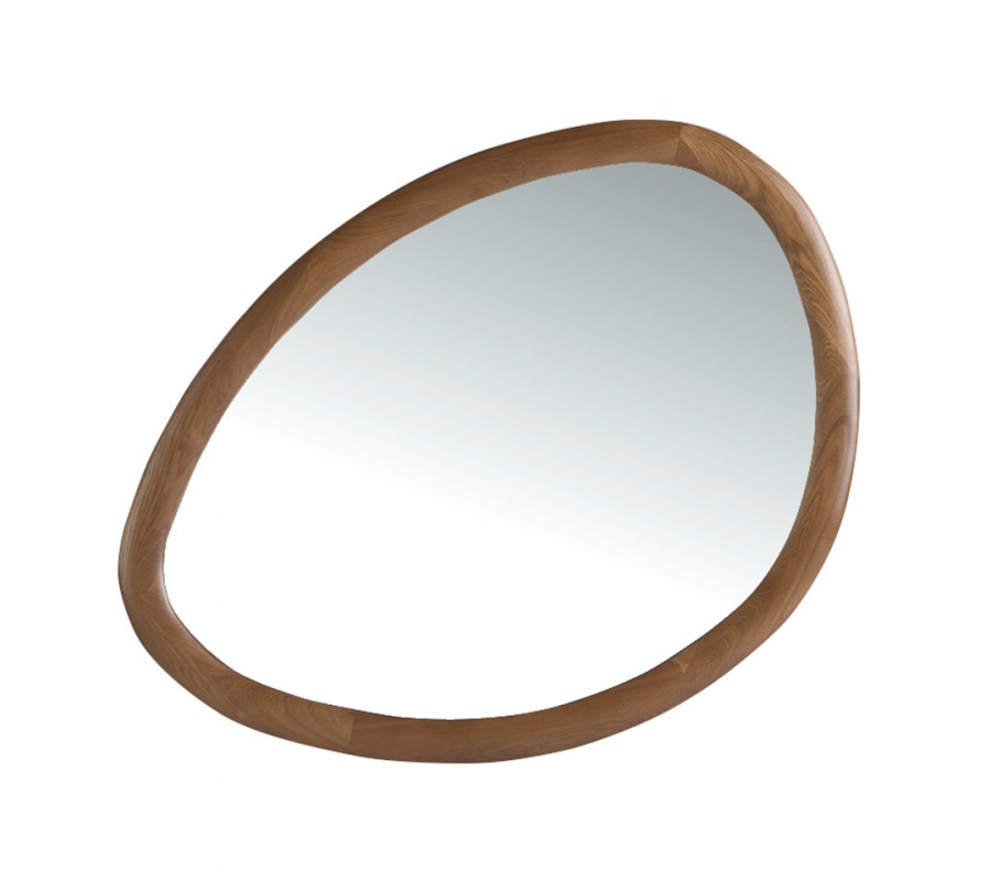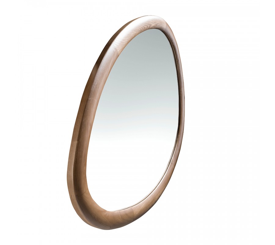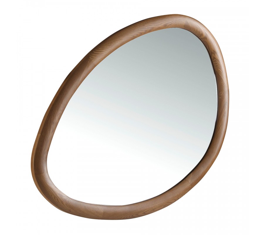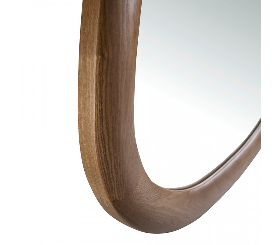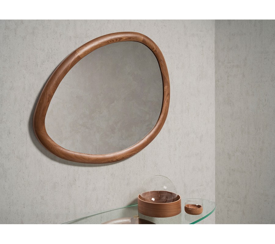Luxusné moderné asymetrické zrkadlo Forma Moderna s orechovým hnedým dreveným rámom organického tvaru 95 cm