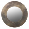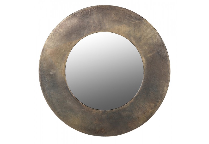 Dizajnové vintage okrúhle nástenné zrkadlo Aura s mosadzným rámom s patinou 90 cm
