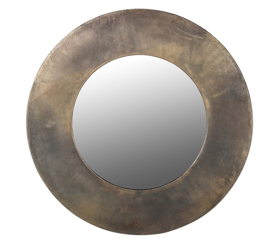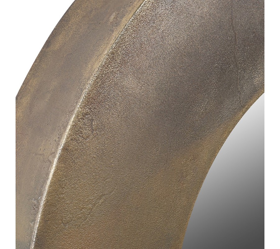 Okrúhle zrkadlo Aura s mosadzným rámom je skvelým doplnkom, ktorý do vášho interiéru prinesie autentický vintage vzhľad s industriálnym nádychom. Rám z kovu je povrchovo upravený do starožitnej mosadze, pričom jeho jemne drsná textúra a nedokonalosti v dizajne, vrátane drobných prasklín, pripomínajú patinovaný vzhľad, ktorý je zámernou súčasťou štýlu. Tento prvok pridáva zrkadlu osobitosť a charakter.