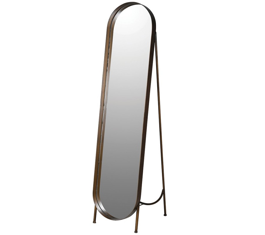 Dizajnové vintage oválne šatníkové zrkadlo Cherry na kovovom stojane vo starožitnej bronzovej farbe 176 cm