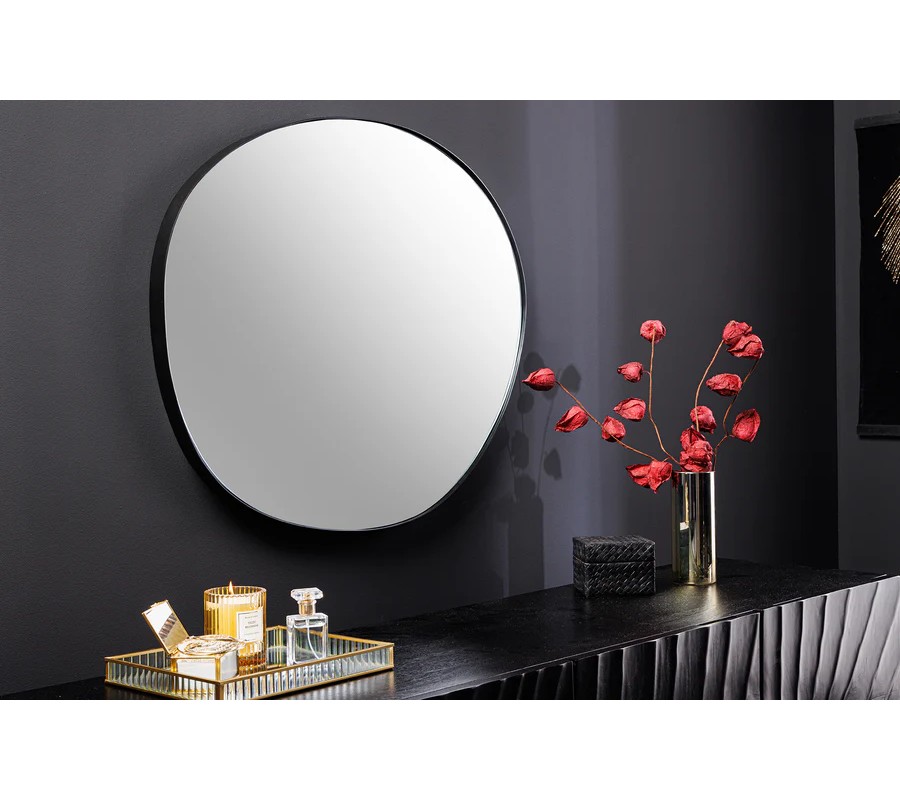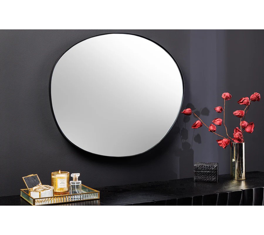 Nástenné zrkadlo Noemi s nepravidelným organickým tvarom zaujme svojou jednoduchosťou a moderným dizajnom. Rám je tenký, vyrobený z kovu v čiernej farbe, čo mu dodáva minimalistický a univerzálny vzhľad. Povrch zrkadla je hladký a lesklý, čo opticky zväčšuje priestor a pridáva interiéru svetlosť.