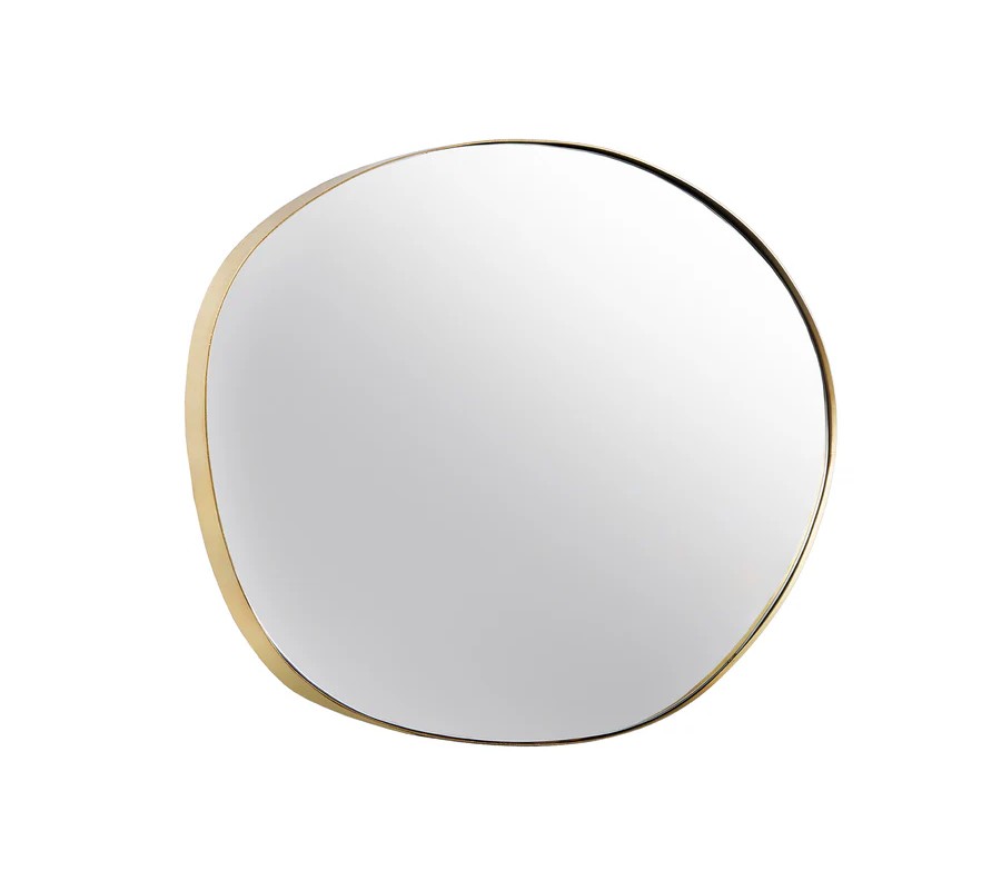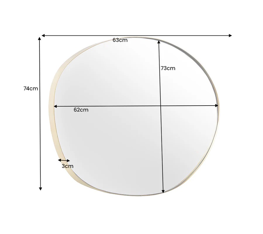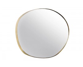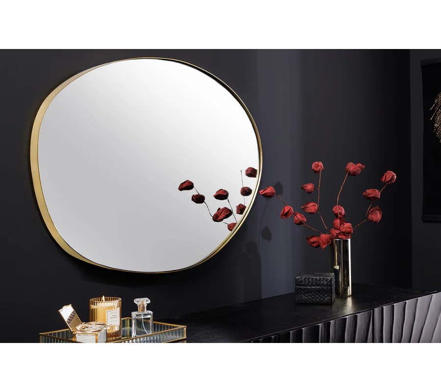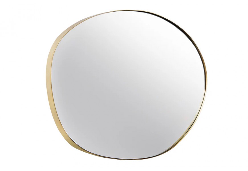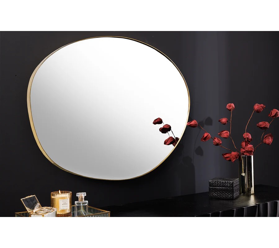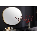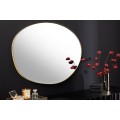 Nástenné zrkadlo Alma s organickým nepravidelným tvarom zaujme svojím elegantným a moderným vzhľadom. Jeho rám je vyrobený z kovu s jemným zlatým povrchom, ktorý dodáva zrkadlu sofistikovaný a luxusný charakter. Reflexná plocha zrkadla je hladká a číra, čo umožňuje optické zväčšenie a presvetlenie priestoru.
