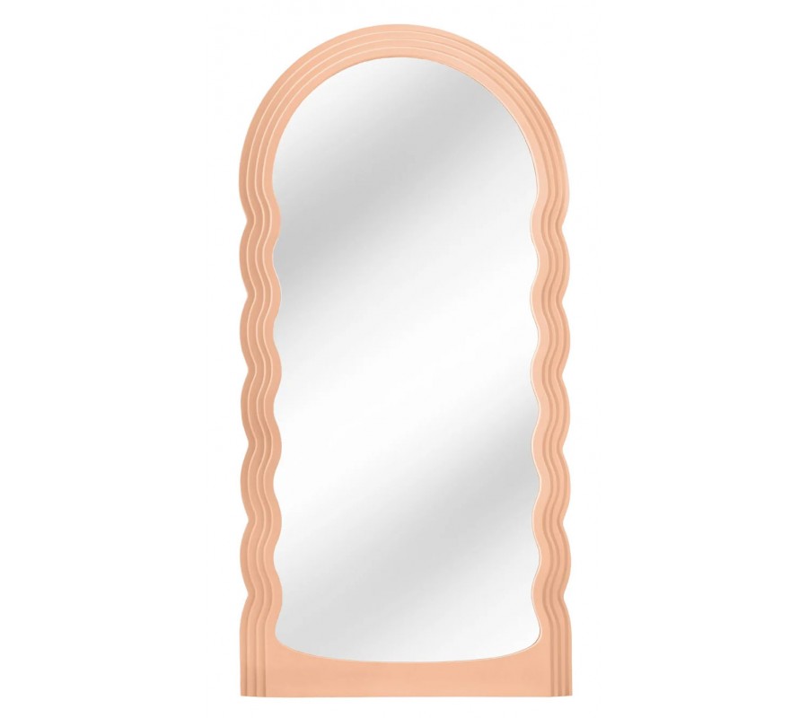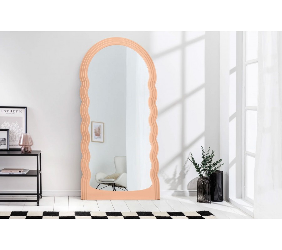 Dizajnové art deco klenuté nástenné zrkadlo Swan s oblúkovým vlnitým rámom v jemnej marhuľovo oranžovej farbe 160 cm