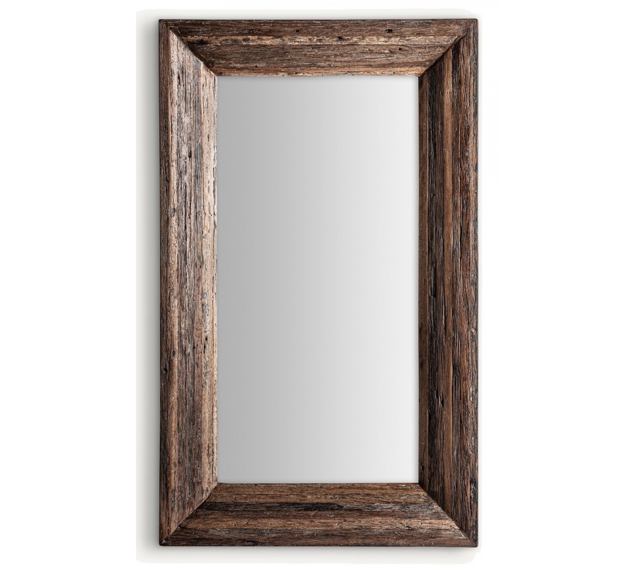 Luxusné vidiecke zrkadlo Juzina je pôsobivý interiérový doplnok vyrobený z masívneho tropického dreva v bohatej hnedej farbe s výraznou štruktúrou letokruhov, ktorá zvýrazňuje jeho prirodzený a remeselný charakter. Je navrhnuté v obdĺžnikovom tvare a svojím vyhotovením pôsobí elegantne, no zároveň surovo a autenticky.