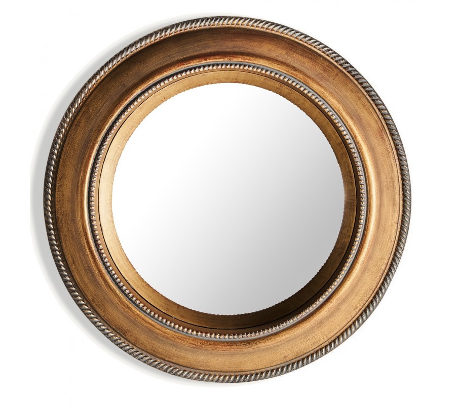 Luxusné vintage okrúhle nástenné zrkadlo Malisa v zlatej starožitnej farbe s vyrezávaným rámom s kovovým efektom 81 cm