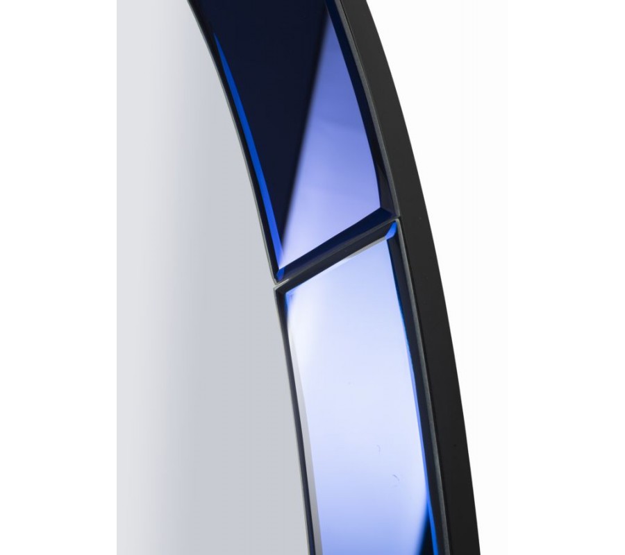 Zrkadlo Retal vyniká svojím oválnym vertikálnym tvarom, ktorý pôsobí elegantne a opticky predlžuje priestor. Jeho najvýraznejším prvkom je dekoratívny rám zo sklenenej mozaiky v sýtej námornícky modrej farbe, ktorá dodáva zrkadlu sofistikovaný charakter. Rám je vytvorený z jemne členených segmentov, ktoré pôsobia ako rytmický dizajnový prvok a zároveň odrážajú svetlo z rôznych uhlov, čím vzniká jemný lesk a pohyb.