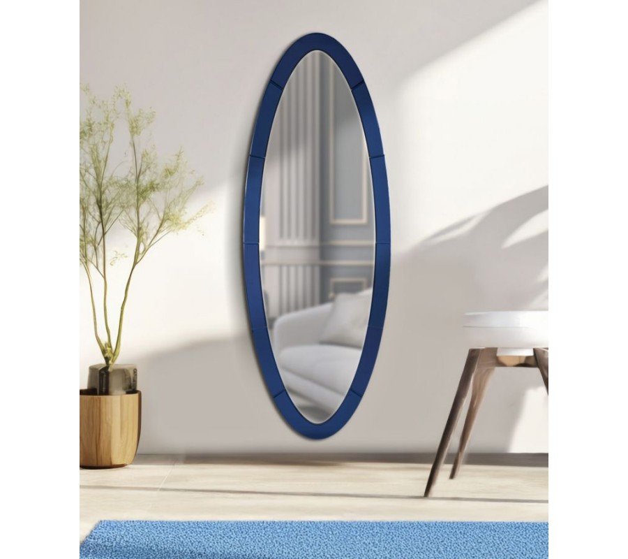 Moderné dizajnové oválne nástenné zrkadlo Retal s námorníckym modrým skleneným rámom 150 cm