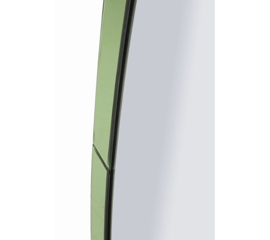Zrkadlo Retal zaujme na prvý pohľad svojím oválnym tvarom a dekoratívnym rámom z uložených sklenených segmentov v jemnej zelenej farbe. Tento rám je rozdelený na pravidelné diely, ktoré vytvárajú elegantný rytmus a zaujímavú svetelnú hru. Sklo dodáva zrkadlu jemný lesk a svieži, moderný charakter, zatiaľ čo zadná dyhová drevená výstuž zabezpečuje pevnosť a odolnosť.