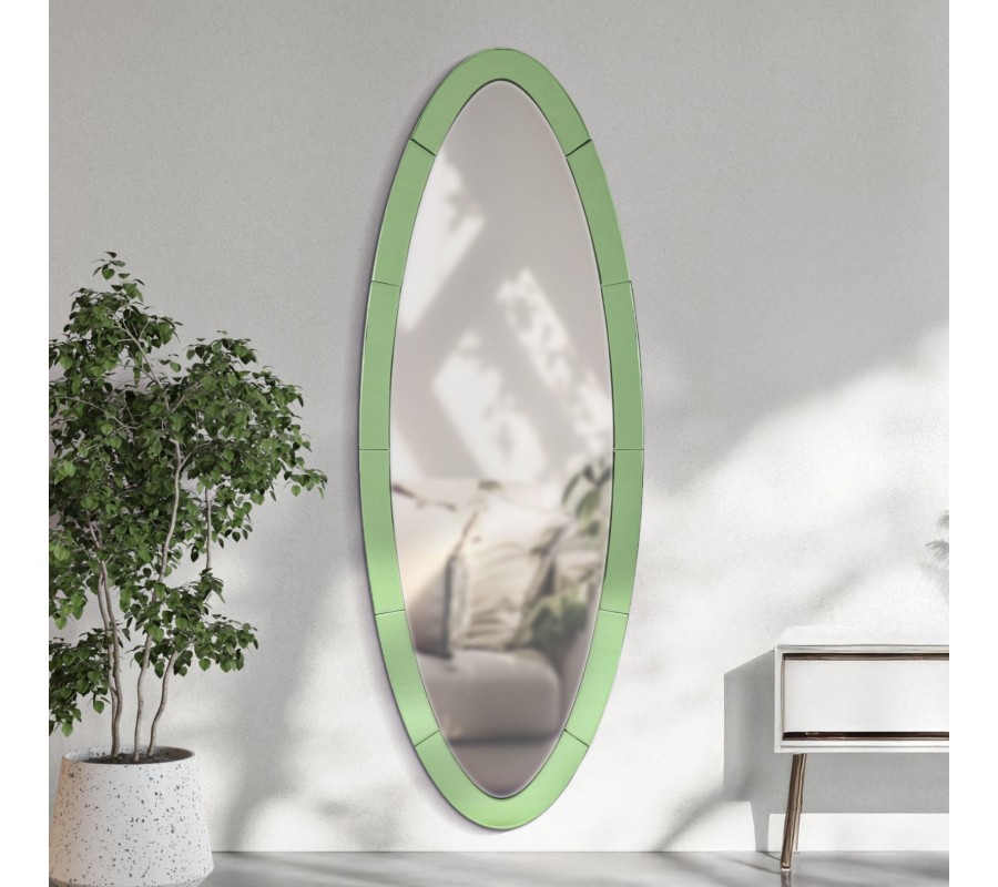 Moderné dizajnové oválne nástenné zrkadlo Retal so zeleným skleneným rámom 150 cm