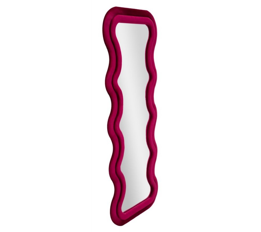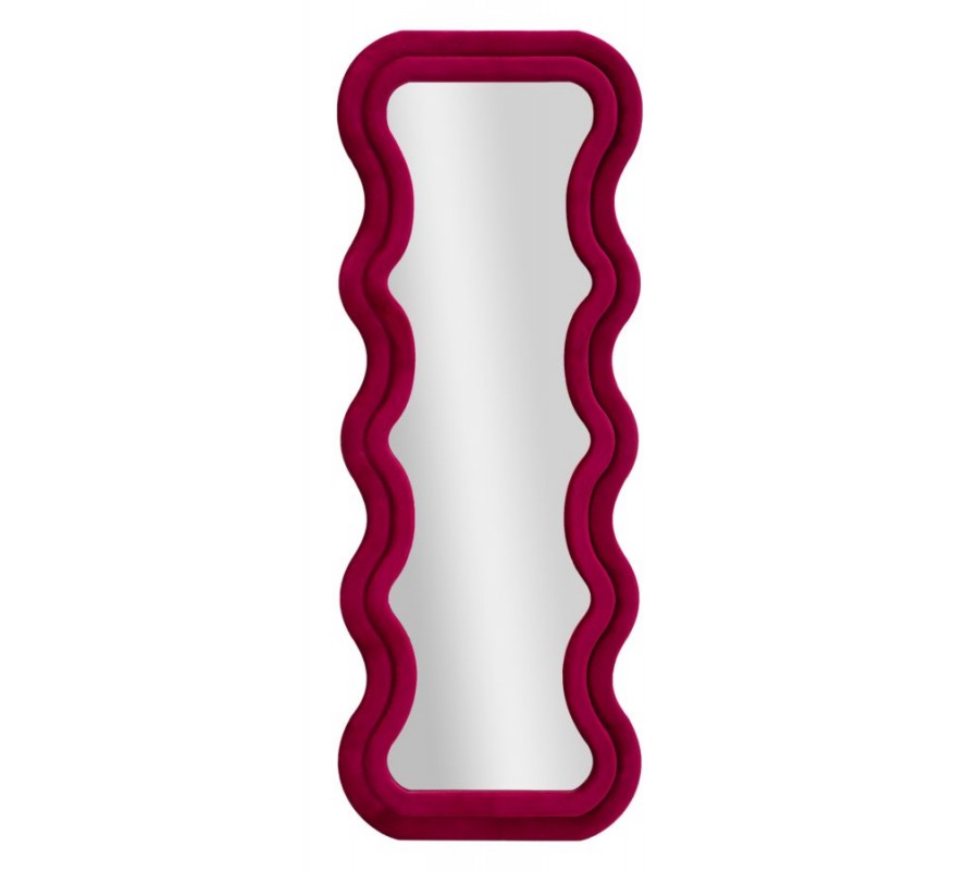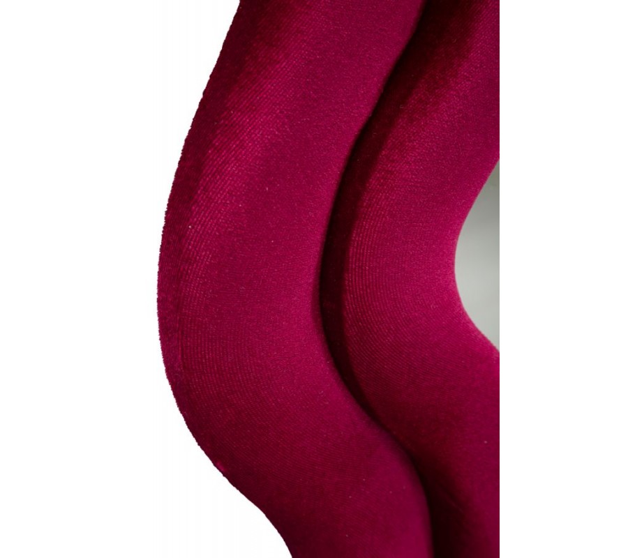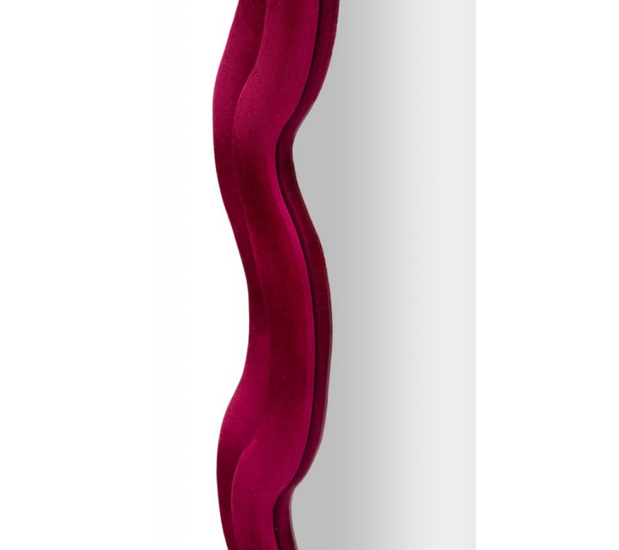 Zrkadlo Swan je neprehliadnuteľný dizajnový prvok s výrazným obdĺžnikovým formátom a plynulými vlnitými líniami po celom obvode, ktoré vytvárajú pútavý rytmus a dodávajú zrkadlu osobitý charakter. Jeho zdvojený rám je potiahnutý hebkým zamatovým poťahom v odvážnom fuksiovo fialovom odtieni, ktorý do interiéru prináša energickú farebnosť a moderný šmrnc.