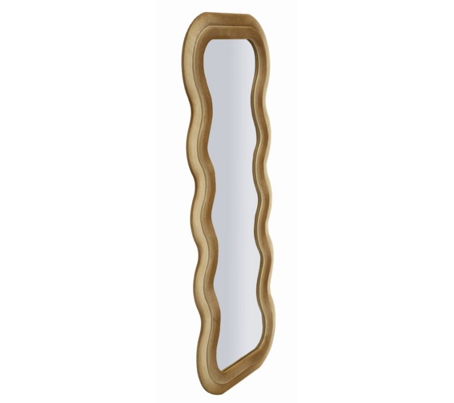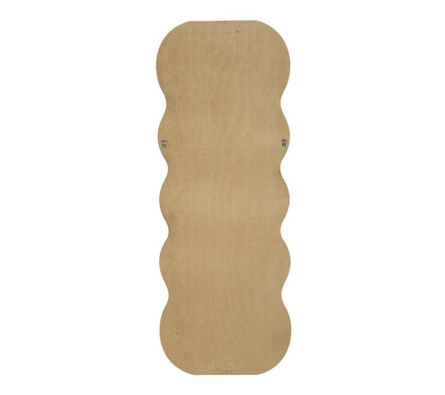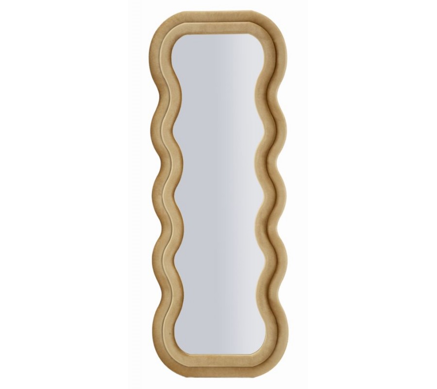 Moderné nástenné zrkadlo Swan v obdĺžnikovom atypickom vlnitom tvare s dvojitým rámom v béžovom zamatovom poťahu 160 cm