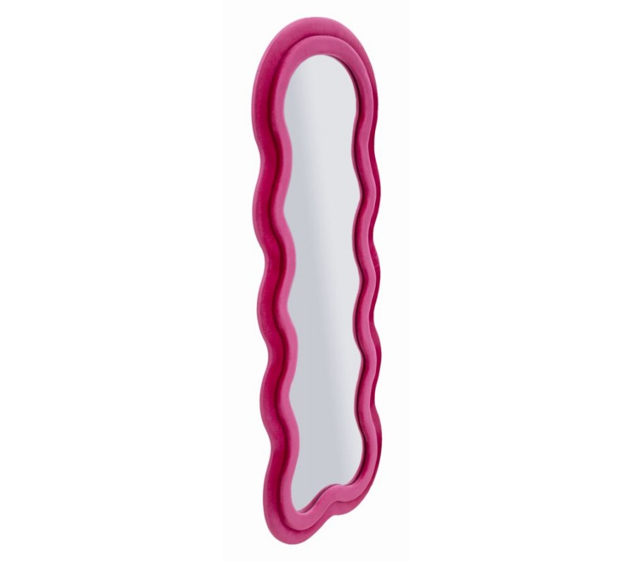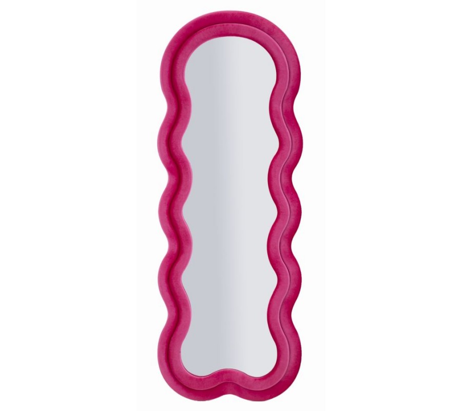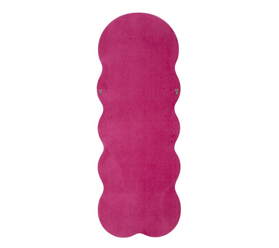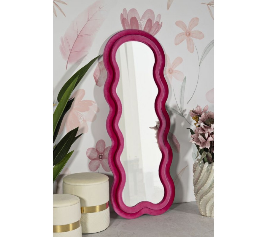 Dizajnové nástenné ružové zrkadlo Swan s vlnitým rámom a klenutým vrchným oblúkom so zamatovým poťahom 160 cm