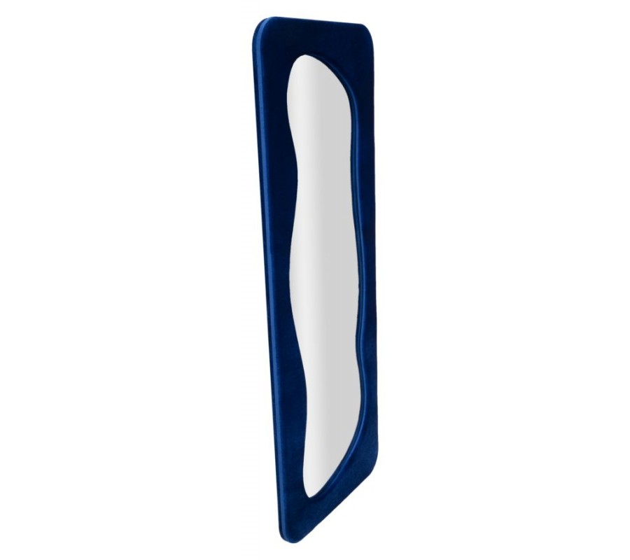 Dizajnové obdĺžnikové nástenné zrkadlo Ripple so sýto modrým zamatovým poťahom s vlnitým výrezom a zaoblenými rohmi 160 cm