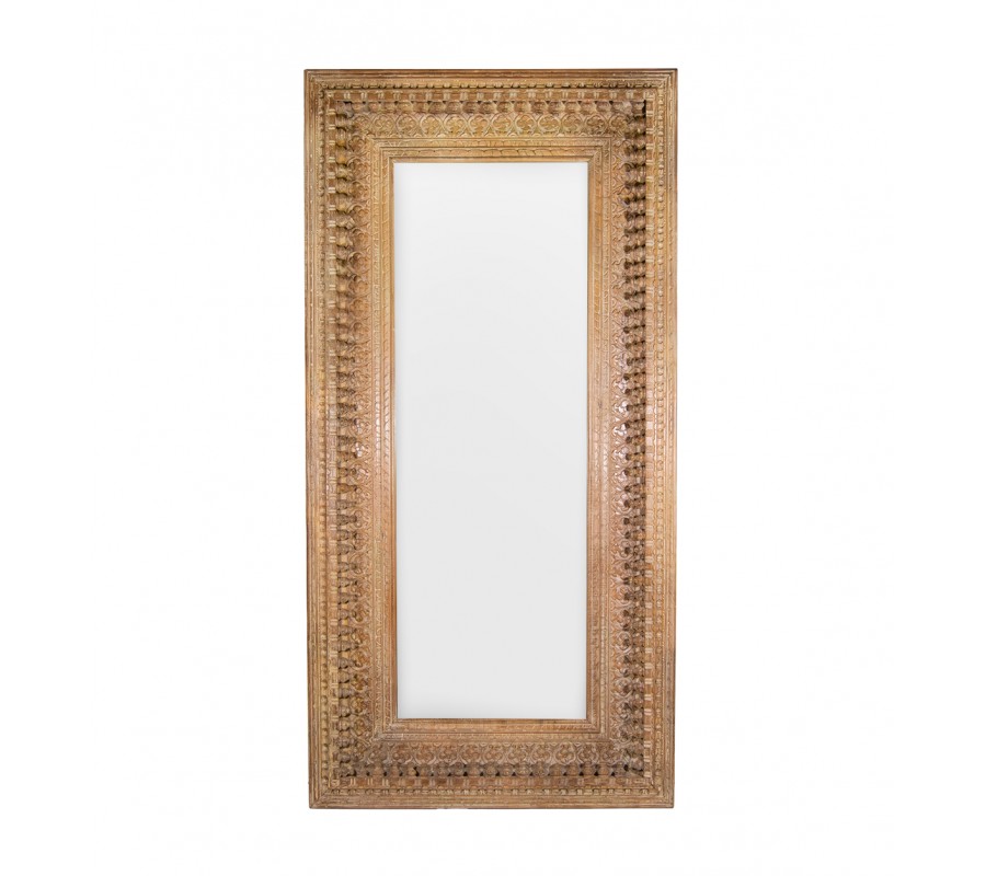 Luxusné etno obdĺžnikové nástenné zrkadlo Albacete s hnedým rámom z mangového dreva s bohatým vyrezávaným zdobením 180 cm