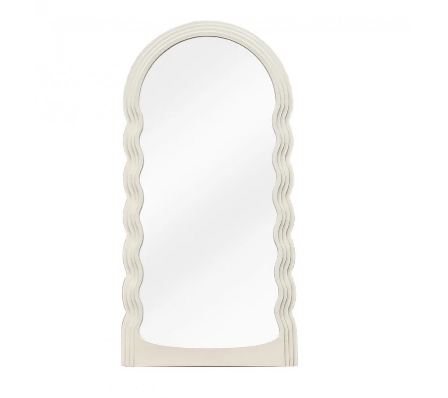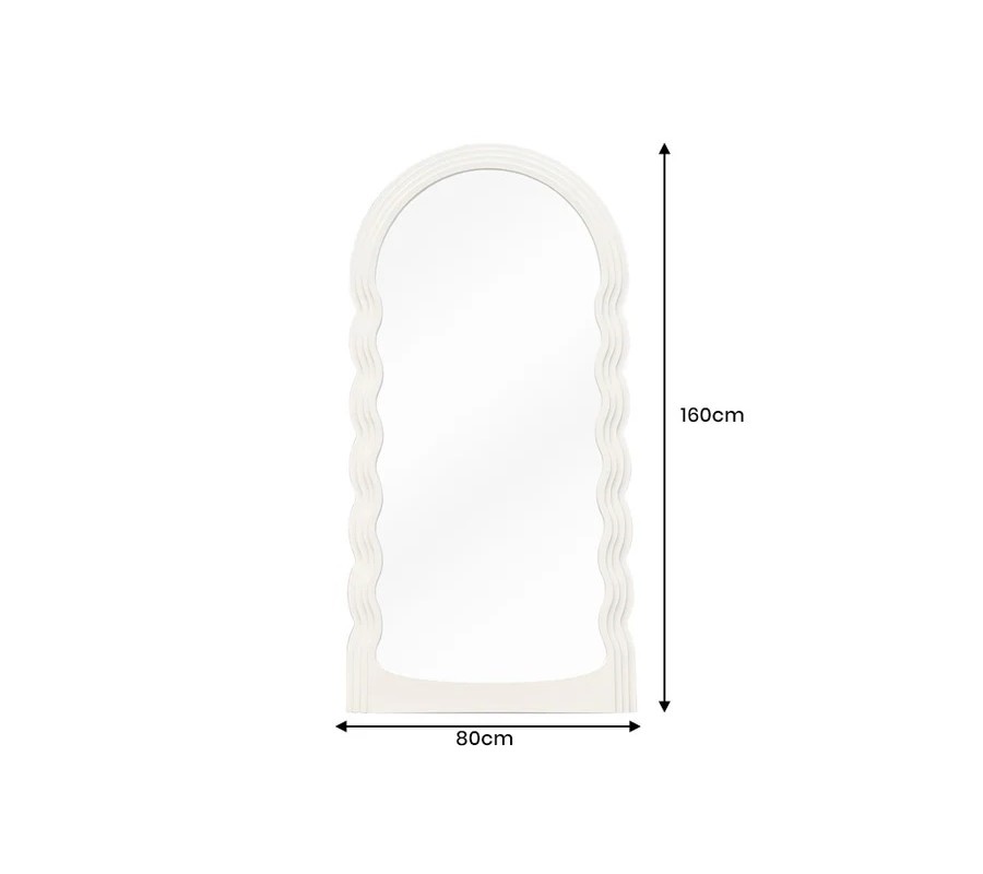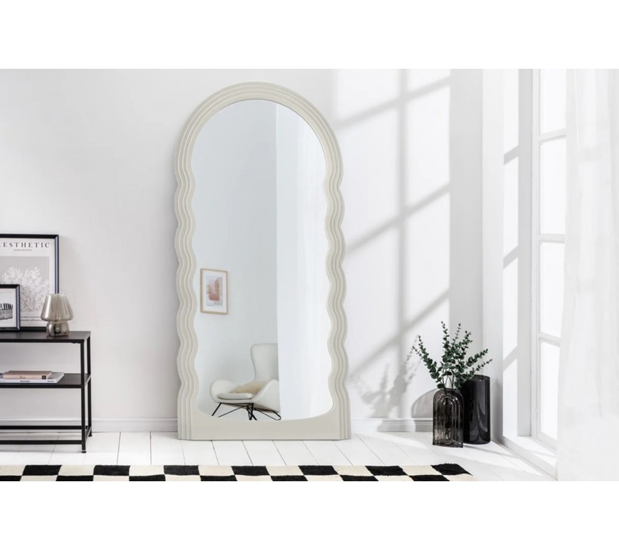 Moderné dizajnové zrkadlo Swan s bielym zvlnený vrstveným rámom s klenutým oblúkom vo vrchnej časti 160 cm