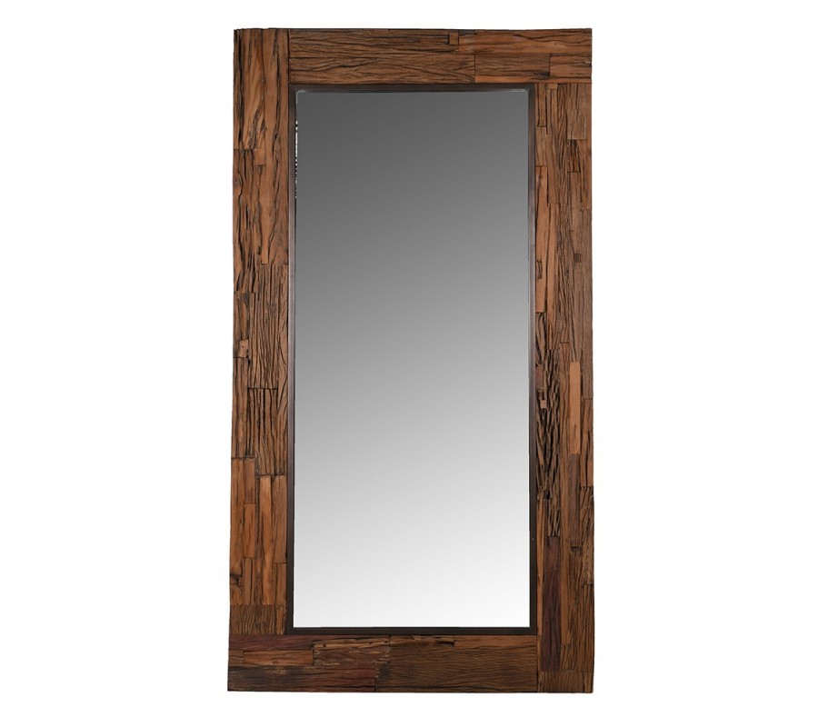 Luxusné masívne vidiecke obdĺžnikové nástenné zrkadlo Ravello v hnedej farbe z recyklovaného dreva 220 cm