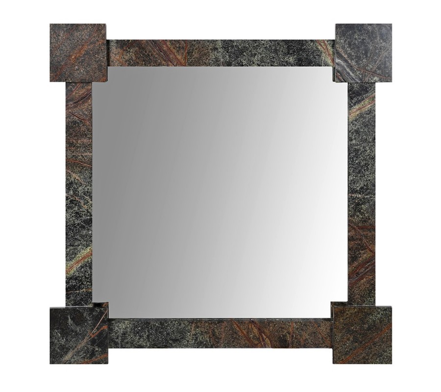 Luxusné moderné mramorové nástenné štvorcové zrkadlo Garen v čiernej farbe so sivým a hnedým žilkovaním 100 cm