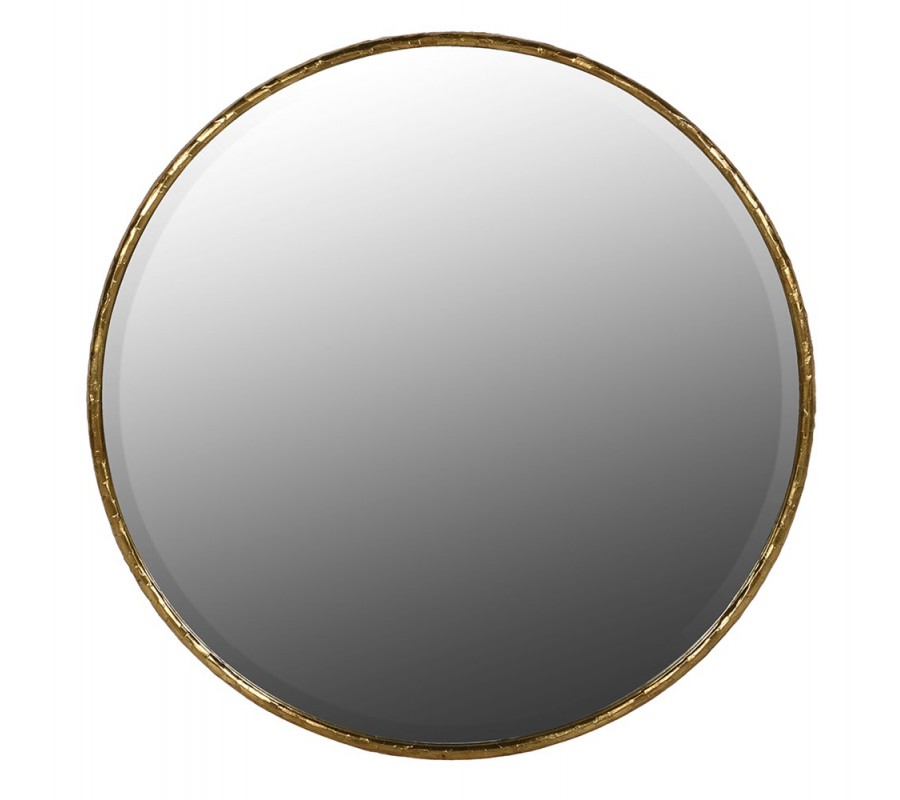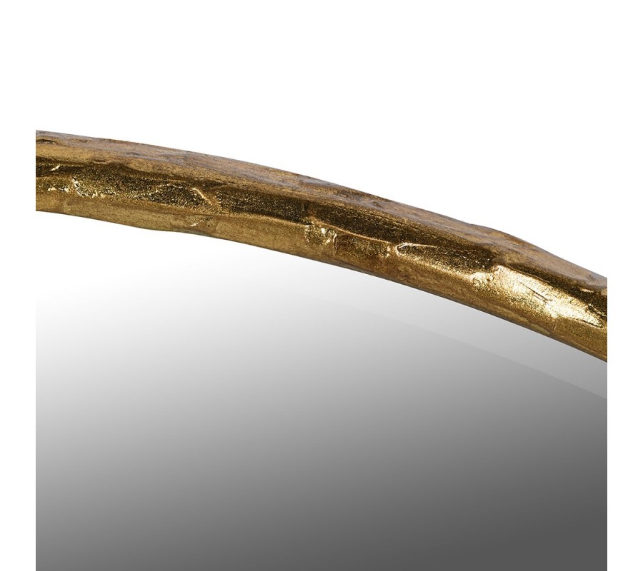 Glamour okrúhle nástenné zrkadlo Loper s tenkým kovovým štruktúrovaným rámom v zlatej farbe 120 cm