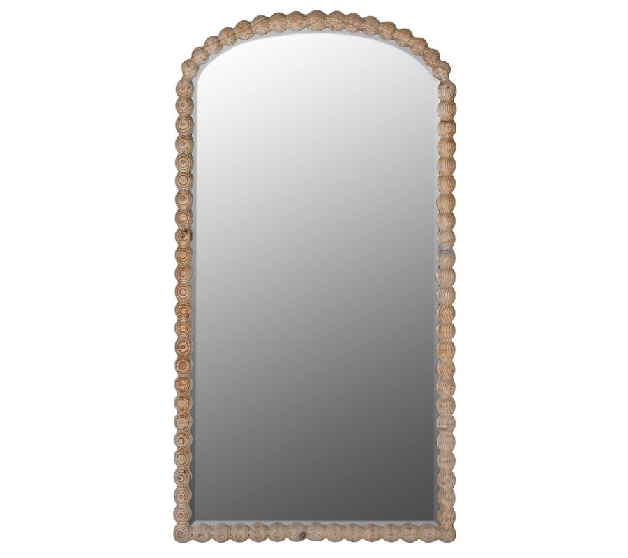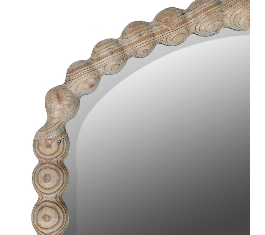 Luxusné dizajnové zrkadlo Boia s oblúkom a vyrezávaným masívnym rámom s guličkami v svetlej hnedej farbe 190 cm