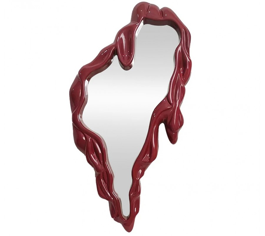 Glamour nástenné zrkadlo Rubia je odvážnym dizajnovým kúskom, ktorý v interiéri okamžite pritiahne pozornosť svojím výrazným plastickým rámom s roztopeným, organickým vzhľadom. Nepravidelná silueta v kombinácii s lesklým hladkým povrchom vytvára dramatický, umelecký efekt, vďaka ktorému zrkadlo pôsobí skôr ako výrazná dekorácia než len funkčný doplnok. Sýta červená farba dodáva priestoru energiu, vášeň a luxusný glamour nádych.