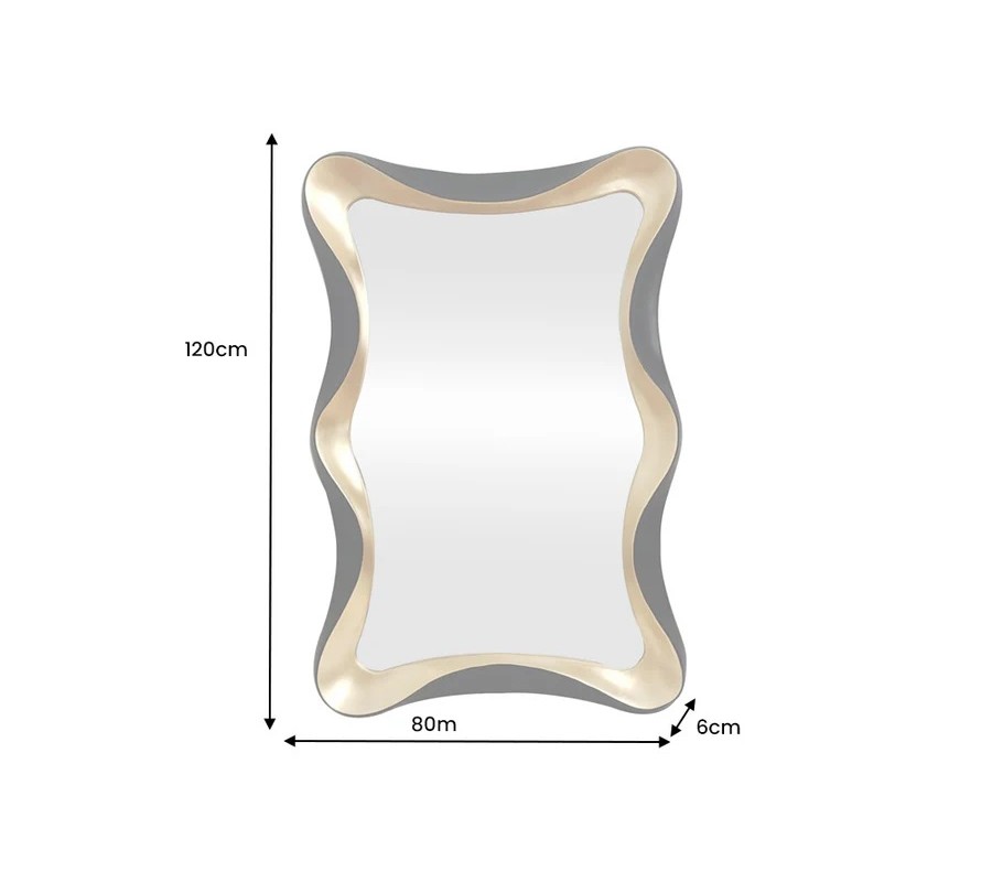 Rám zrkadla je vyrobený z kvalitnej živice, ktorá umožňuje precízne tvarovanie detailov a zároveň robí zrkadlo ľahkým, no pevným. Vlnkovitý dizajn pôsobí plasticky, dekoratívne a luxusne, vďaka čomu zrkadlo funguje nielen ako praktický prvok, ale aj ako výrazná dizajnová dekorácia steny.