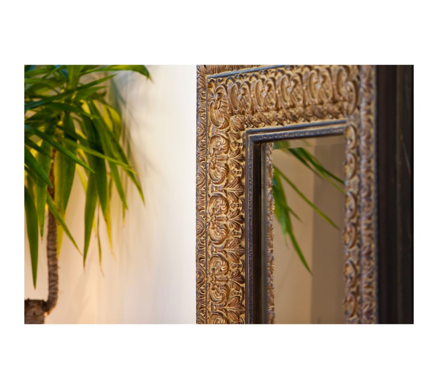 Štýlové zrkadlo s rozmermi 140x110cm je vďaka svojmu masívnemu, drevenému rámu s komplikovaným, dekoratívnym zdobením naozaj neprehliadnuteľným a unikátnym doplnkom, ktorý sa stane ozdobou akejkoľvek miestnosti. Dokonale sa hodí najmä do orientálne či koloniálne ladených priestorov väčších rozmerov.