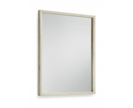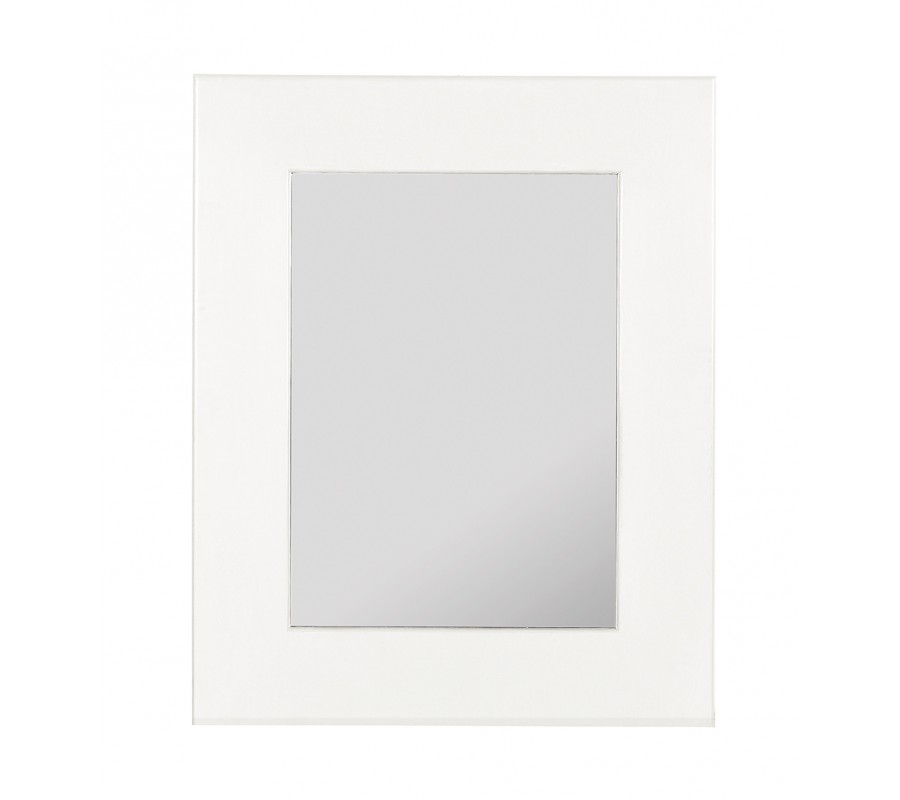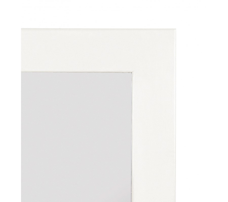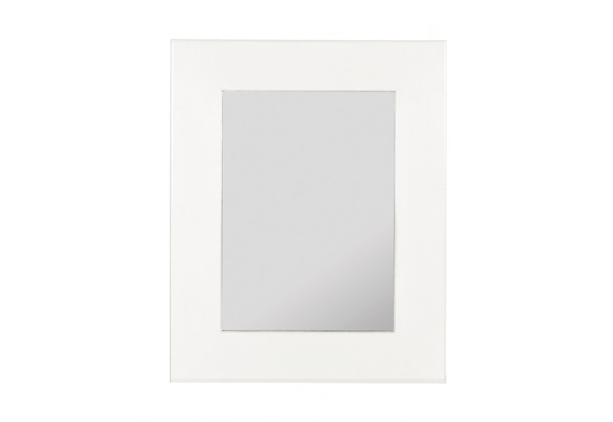 Zrkadlová plocha má jednoduchý obdĺžnikový tvar a ohraničuje ju široký rám z mahagónového dreva. Ide o tvrdý materiál, ktorý zaručuje výbornú odolnosť a trvanlivosť výrobkov z neho. Povrch je upravený žiarivým bielym náterom, ktorý v kombinácii s modernými rovnými líniami a striktnými geometrickými tvarmi pôsobí čistým a elegantným dojmom.